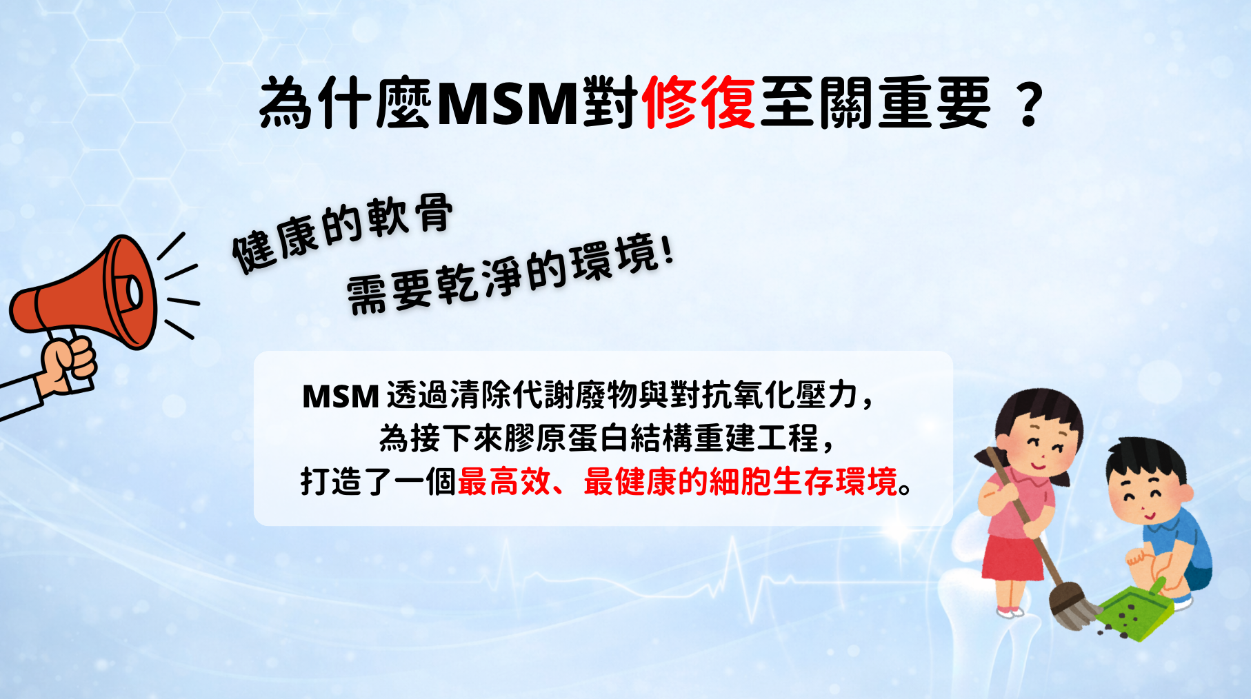 近年來,越來越多人開始關注關節保健,除了膠原蛋白之外,另一個常被提到的成分就是 MSM。但對多數人來說,MSM其實有點陌生,甚至不知道它是什麼。