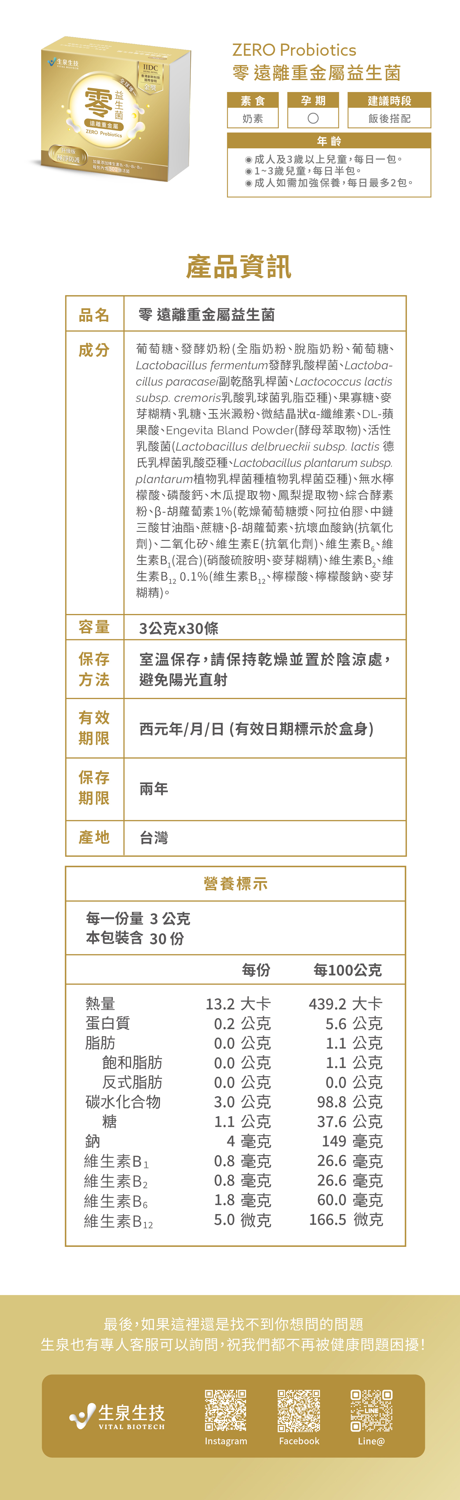 【生泉生技】零 遠離重金屬益生菌 1 盒,一盒 30 條