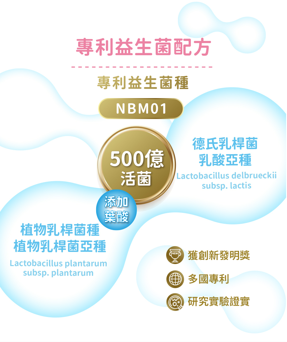 •獨家專利益生菌 NBM01