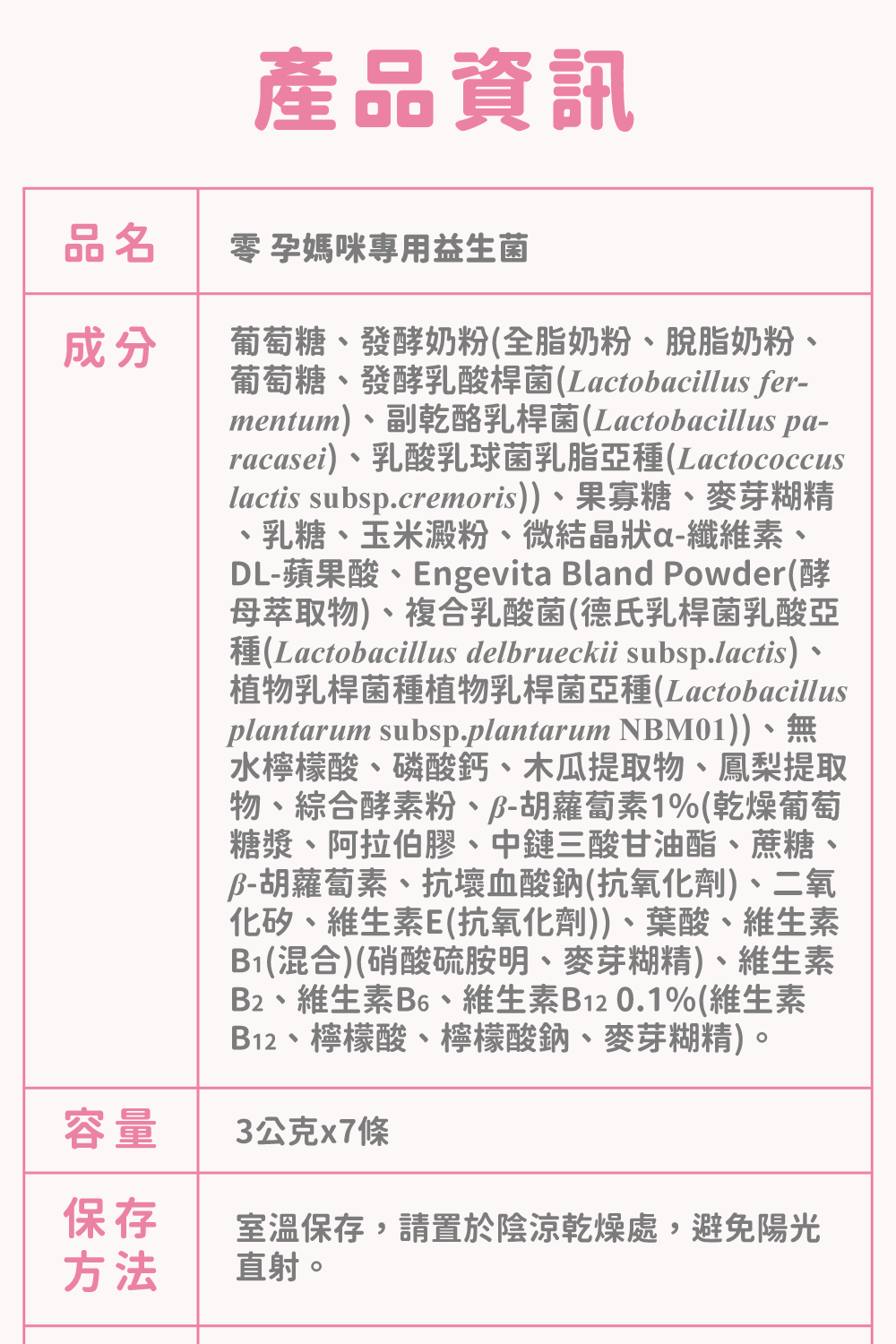 •專為備孕、懷孕、產後的準媽媽們打造的益生菌,溫和守護媽咪和寶寶的健康